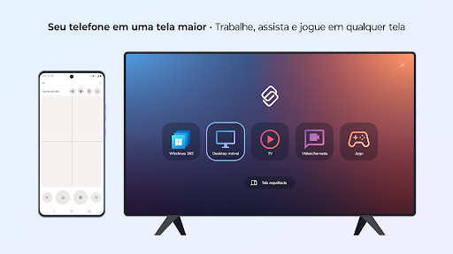 O Smart Connect integra seus dispositivos de um jeito inovador. Com ele, você faz várias tarefas ao mesmo tempo e controla os aparelhos sem problemas. Seja para fazer streaming de apps, buscar arquivos ou gerenciar acessórios, o Smart Connect simplifica sua maneira de interagir com os dispositivos.Recursos principais:
