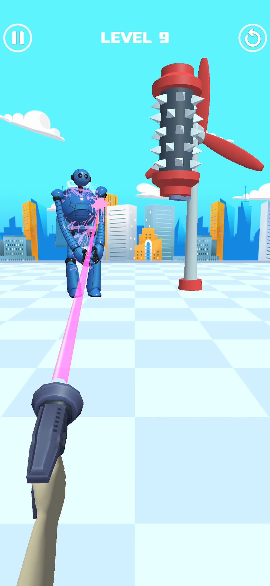 Atire e esmague: aponte sua arma e derrube todos os robôs em seu caminho.
