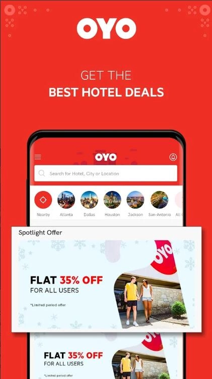 Find the most affordable hotel rooms with the fastest growing hospitality company in the world based on your location, seasonality, and preference in amenities with OYO’s patented algorithmic pricing tool. Search for discounted rates by location, travel dates, facilities and amenity preference, and hotel type -- now including OYO hotels, inns, and townhouses. New users can book their first room starting from $19 when they apply the coupon code ‘OYOUS19’ at booking. What's more? OYO is also giving $50 OYO money once you complete the signup. Isn't it great!
